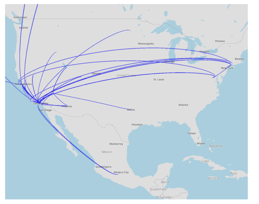 Карта активности корпоративных самолётов Netflix с начала года (с 1 января по 7 декабря)