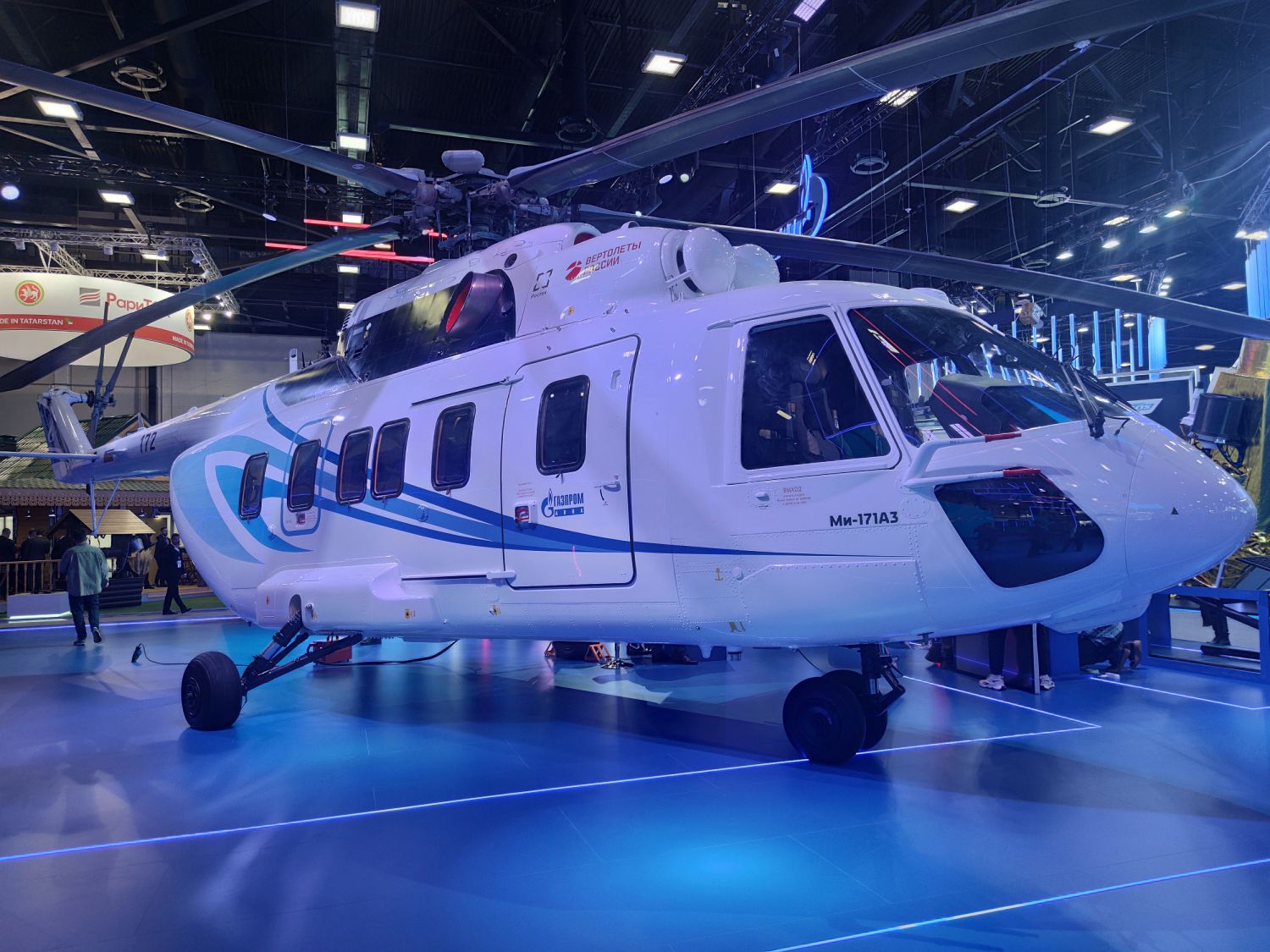 Холдинг «Вертолеты России» Госкорпорации Ростех представил новейший вертолет Ми-171А3 в грузопассажирской конфигурации на XII Петербургском международном газовом форуме. Эта новейшая машина семейства Ми-8/17 может применяться для выполнения самого широкого спектра задач. При его разработке применены передовые авиационные технологии, которые позволили обеспечить высочайший уровень безопасности.