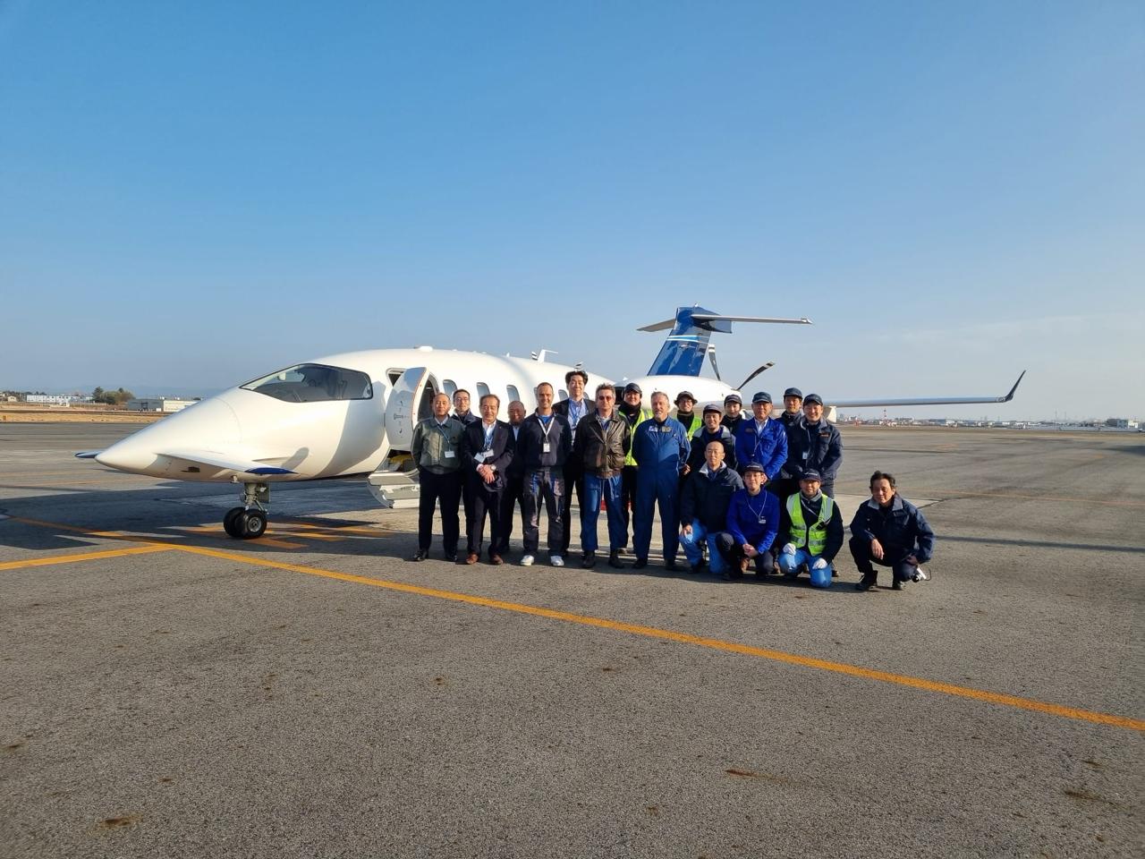 Новый самолёт приземлился на ВПП аэропорта Нагои 16 января 2026 года после выполнения рейса из штаб-квартиры Piaggio Aerospace в Генуе (Италия), пролетев над Грецией, Египтом, Саудовской Аравией, Оманом, Индией и Вьетнамом. В то же время Японское бюро гражданской авиации (JCAB) официально признало сертификат типа P.180 для японского рынка.