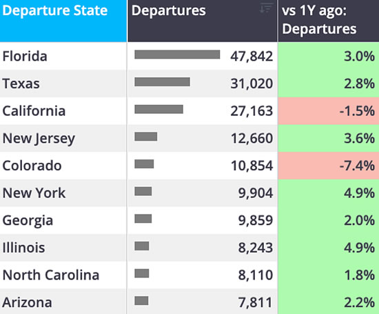 Активность бизнес-джетов по штатам США с 1 декабря по 11 января