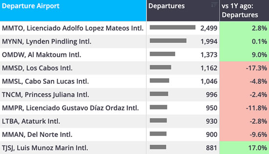 На второй неделе 2026 года активность бизнес-джетов на североамериканском рынке выросла на 11% по сравнению с аналогичным периодом прошлого года. Флорида стала самым загруженным штатом США, количество рейсов увеличилось на 11%, за ней следует Техас, где трафик вырос на 9%. В Калифорнии на второй неделе текущего года наблюдался рост числа рейсов всего на 1%, при этом за четыре недели тенденция составила -1%, а за 2025 год – +4%. Другие быстрорастущие штаты США по активности бизнес-джетов в прошлом году включают Нью-Джерси, Аризону и Иллинойс.