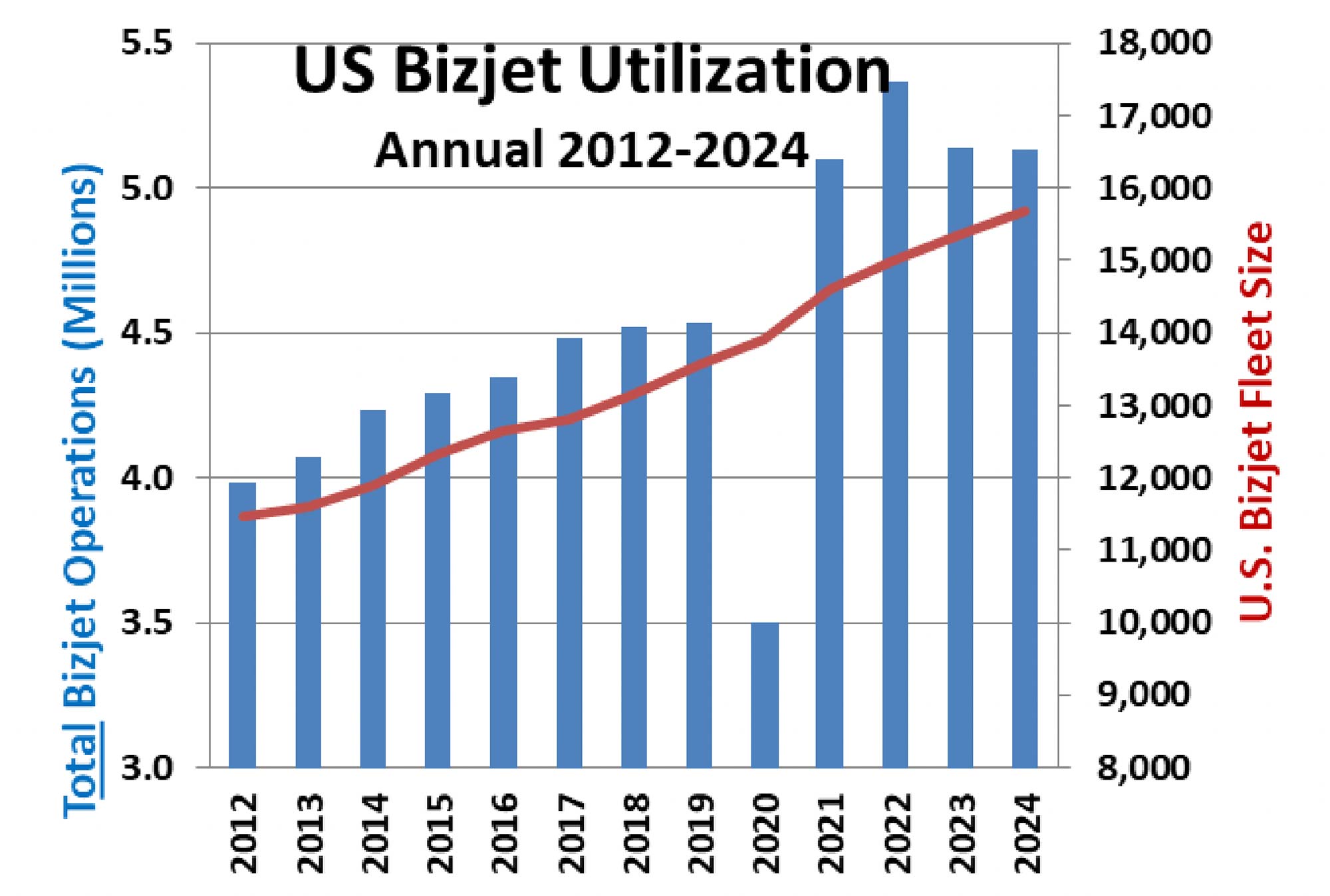 Увеличение использования деловой авиации по мере роста флота сродни тому, как если бы Федеральное управление автомобильных дорог ежегодно сообщало о рекордном количестве пройденных автомобилями миль по мере увеличения общего числа транспортных средств на дорогах. Несмотря на это, от давнего и бесспорного использования этого показателя в качестве барометра состояния отрасли будет трудно избавиться. Как однажды сказал Марк Твен: «Чем меньше оснований для оправдания традиционной практики, тем сложнее от нее избавиться».