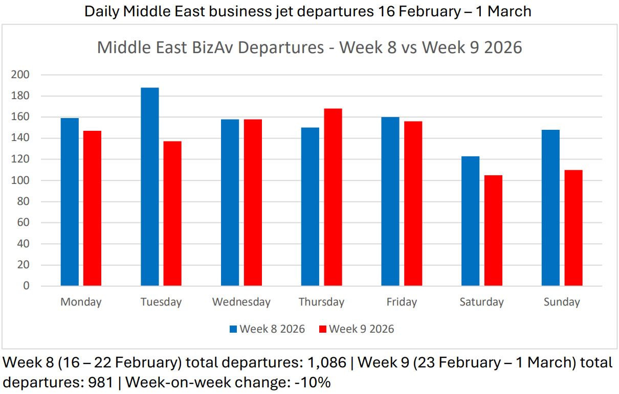 Вылеты с деловых самолётов на Ближнем Востоке: последние две недели (16 февраля – 1 марта)